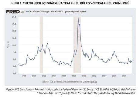 Cuối cùng, nhiều tín hiệu cảnh báo sớm khác của thị trường tài chính vẫn chưa gợi ý khả năng suy thoái. Một trong số đó là chênh lệch lợi suất giữa trái phiếu có độ rủi ro cao (dưới mức đầu tư) với lợi suất trái phiếu Mỹ. Khi thị trường mất niềm tin vào tăng trưởng của nền kinh tế và khả năng trả nợ của các doanh nghiệp, chênh lệch lợi suất thường tăng rất mạnh do nhà đầu tư bán tháo các trái phiếu rủi ro này. Dữ liệu thị trường cho thấy chưa có sự tháo chạy này, hàm ý niềm tin vào sức khỏe của nền kinh tế và các doanh nghiệp vẫn tương đối cao.
